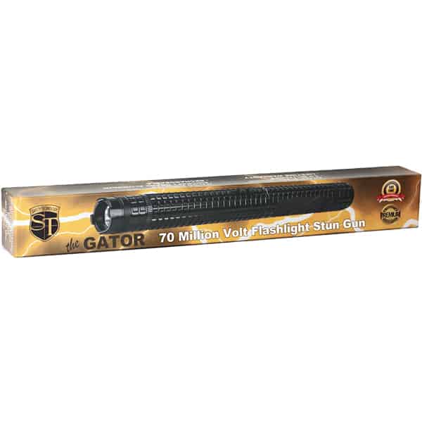 The Safety Technology Gator serves as a stun gun, flashlight, and a striking weapon all in a single unit. The Gator has a bright 120 lumen flashlight with 3 light modes. When blinding an attacker isn’t enough, the Gator dishes out a whopping 70 million volts shock. Because of its aircraft aluminum construction and 13-inch length, the Gator can also be used as a defensive. The textured handle ensures you keep a firm grip with each swing. No need to worry about having to invest in batteries. It comes with 2 lithium rechargeable batteries and a wall charger. It also comes with a nylon holster that goes on your belt.